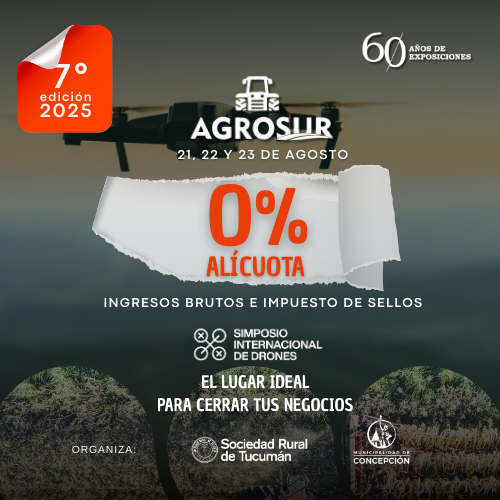 Del 21 al 23 de agosto, Concepción será sede de Agrosur 2025, una exposición que combinará capacitación, tecnología y el primer Simposio Internacional de Drones en el país. José Frías Silva, presidente de la Sociedad Rural de Tucumán, destacó que el evento busca celebrar 60 años de exposiciones y potenciar el desarrollo productivo del sur […]