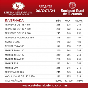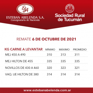El miércoles 6 de octubre se llevó a cabo el Remate Televisado transmitido en vivo desde las instalaciones de la Sociedad Rural de Tucumán. Conto con la presencia del martillero Manuel Lanusse.